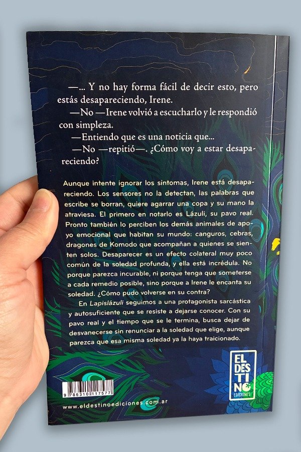 Aunque intente ignorar los síntomas, Irene está desapareciendo. Los sensores no la detectan, las palabras que escribe se borran, quiere agarrar una copa y su mano la atraviesa. El primero en notarlo es Lázuli pero pronto también lo perciben los demás animales de apoyo emocional que habitan su mundo: canguros, cebras, dragones de Komodo que acompañan a quienes se sienten solos. Desaparecer es un efecto colateral muy poco común de la soledad profunda y ella está furiosa. No porque la desaparición parezca incurable, ni porque tenga que someterse a cada remedio posible, sino porque a Irene le encanta su soledad y no entiende cómo pudo volverse en su contra.